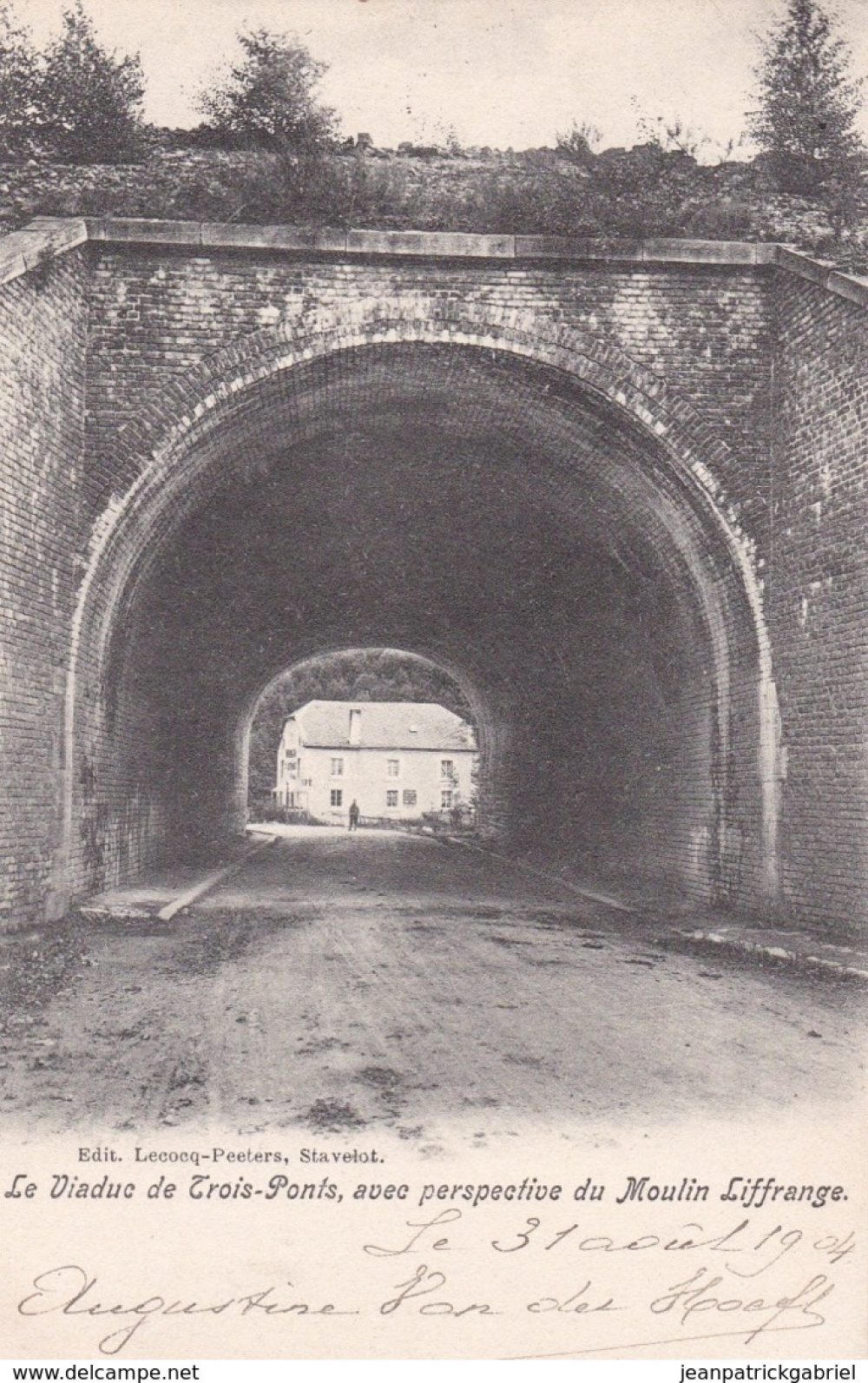 A la sortie des tunnels, en direction de Stavelot, on trouve le moulin de Léon Liffrange. L’imposante demeure à gauche qui dispose d’encadrements de fenêtres alternés de briques et de pierres blanches abrite la famille Liffrange. Suite à la prospérité de ses affaires, Léon Liffrange fera construire un entrepôt à grains, jouxtant sa maison.